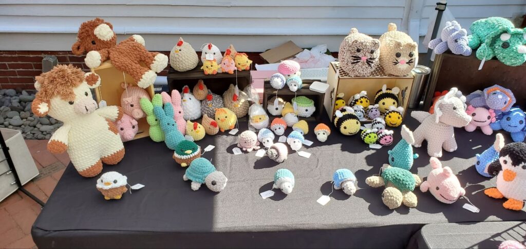 Handcrafted knit and crocheted goods. Made in New Hampshire.